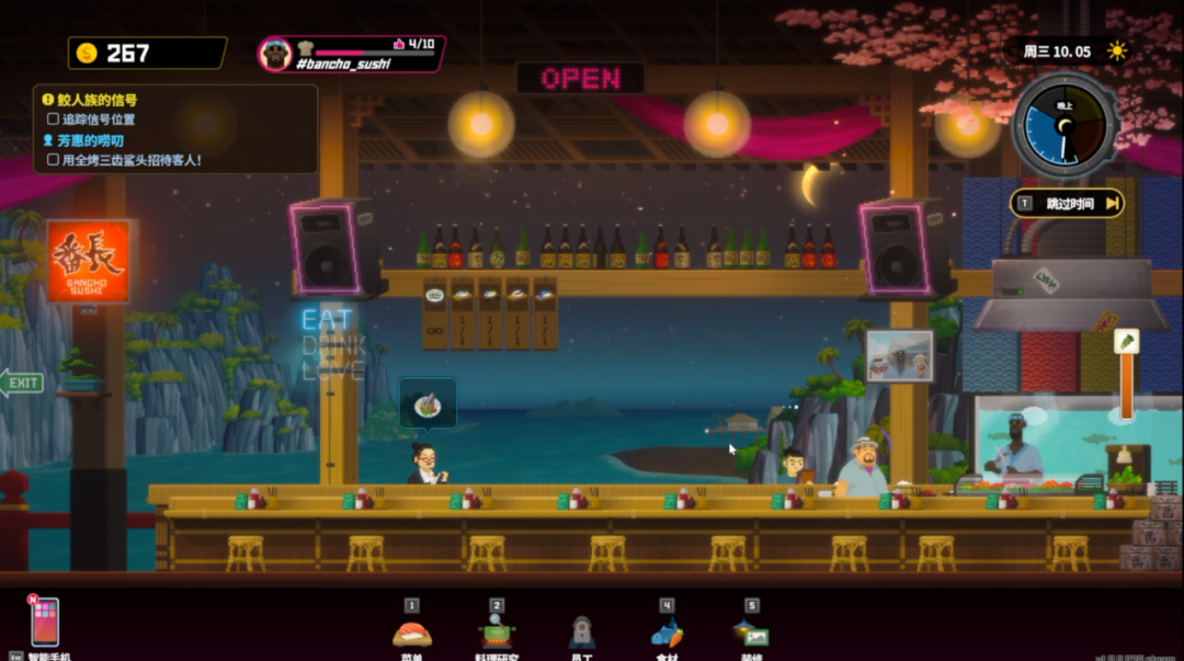 而到了晚上呢,戴夫将自己捕捞到的于变成食材,打理寿司店赚钱。