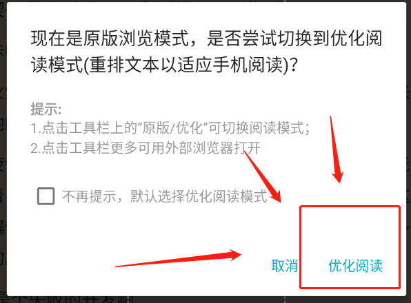 我们在阅读的时候切记!一定要选择【优化阅读】!!因为原本书源可能是有乱七八遭的广告,我们选择了【优化阅读】之后就会直接把广告全部屏蔽掉,一定要选择哦!
