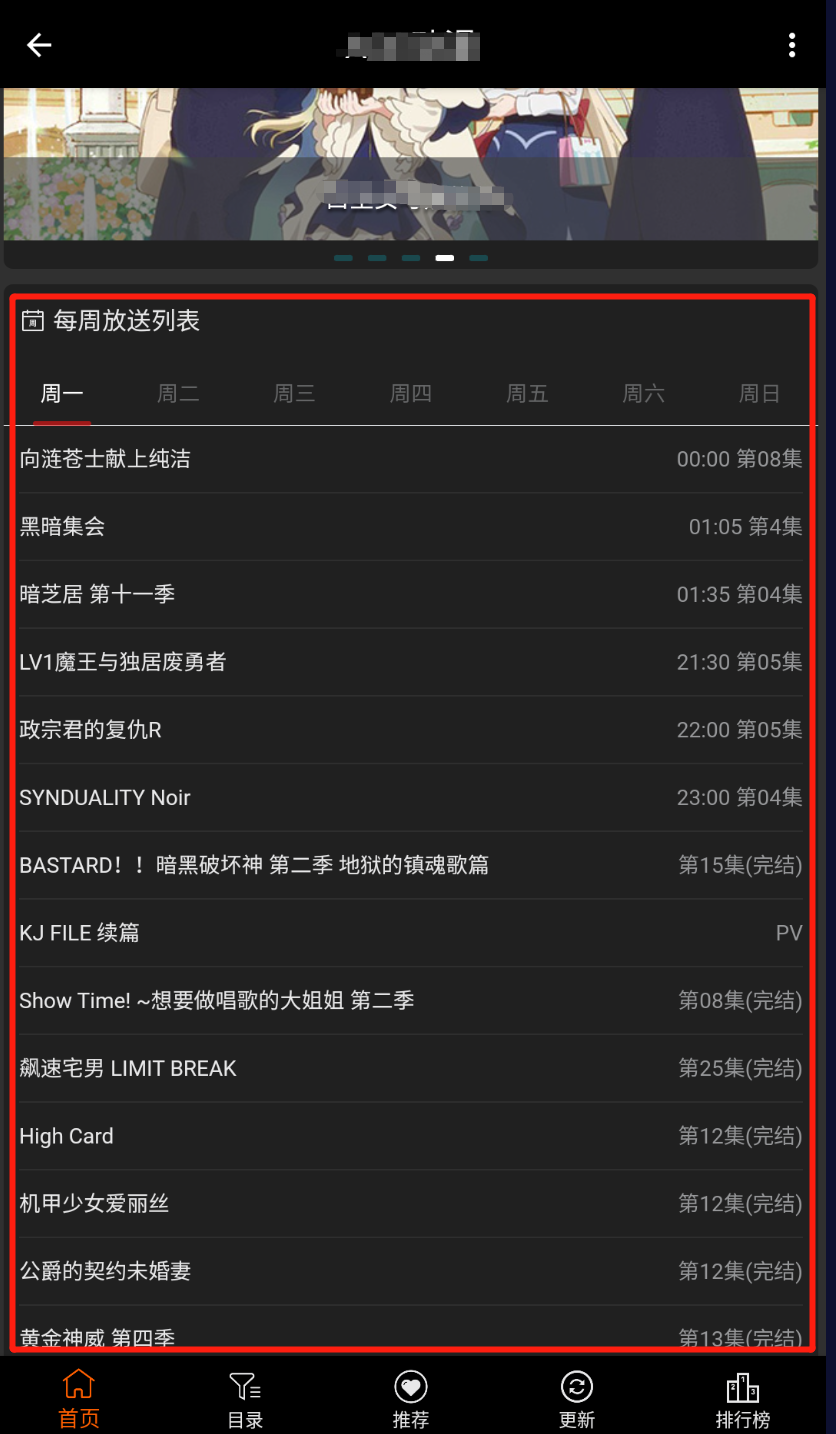 软件呢是没有任何那种弹窗、视频的恶心人广告。首页呢我们就可以看到一个【新番更新表】的模块,这里呢官方把动漫更新的时间还有更新到第几集都给我们标注出来了,还是很不错的。