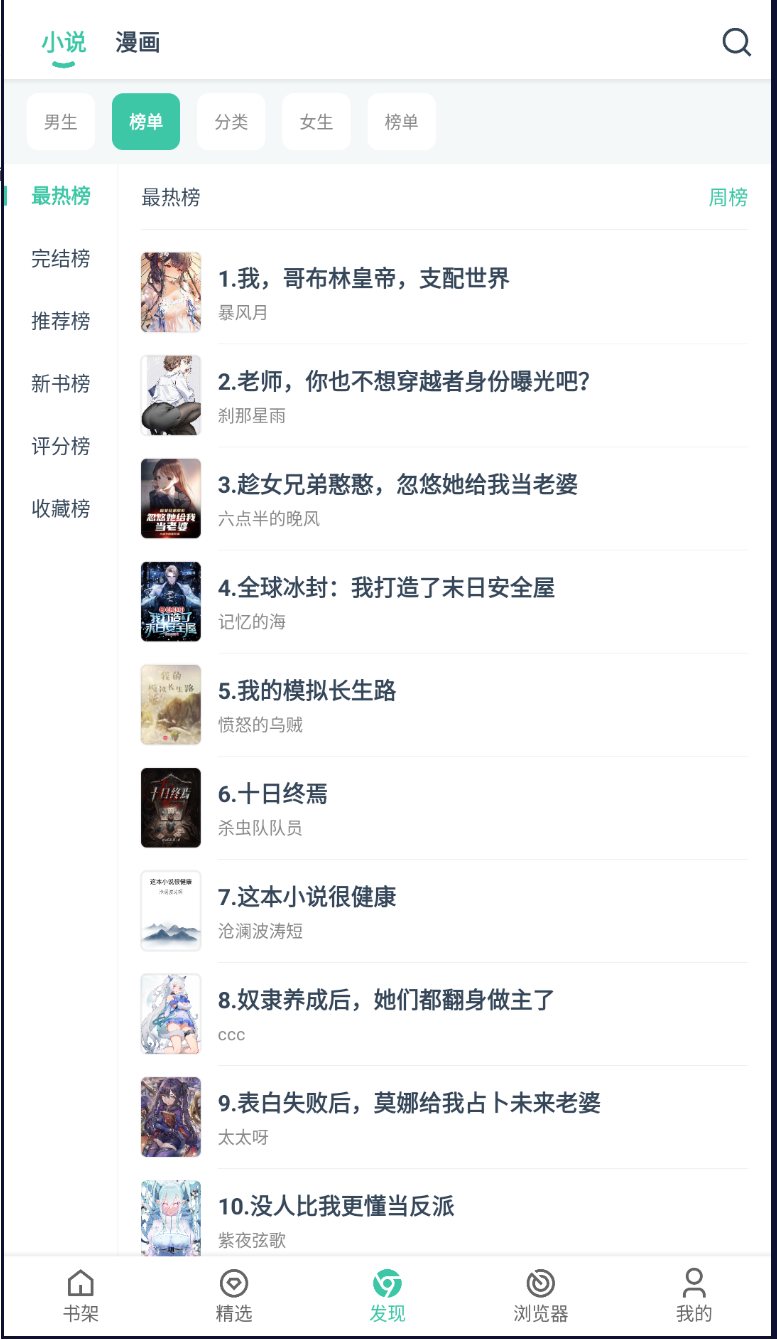 如果说呢我们书荒或者是漫慌了,就可以点开【发现页面】,这里给大家列出来了各种的榜单,还有分类。