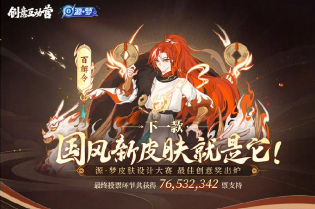 《王者荣耀》宣布,在 3 月 24 日-3 月 28 日的蒙犽源梦皮肤设计大赛最终投票环节中,作品《百解令》以 7653 万票胜出。官方在 3 月 30 日-4 月 1 日对该结果进行了公示,作品《百解令》符合本次蒙犽皮肤设计大赛规则,将获评本次大赛的“最佳创意奖”。