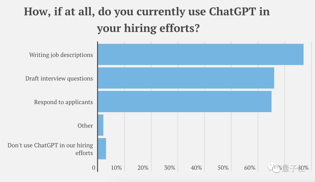 还没完呢 ——ChatGPT 甚至还参与了招聘,比如撰写职位描述、回复求职者等等。结果,有 77% 的人说这有助于他们撰写职位描述……(不知道 HR 是喜是忧)