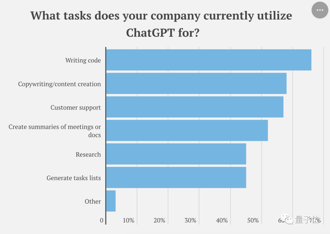 调查数据显示,对于已经“上路”的公司来说,写代码是最最热门的用法,有 66% 的企业都在用。