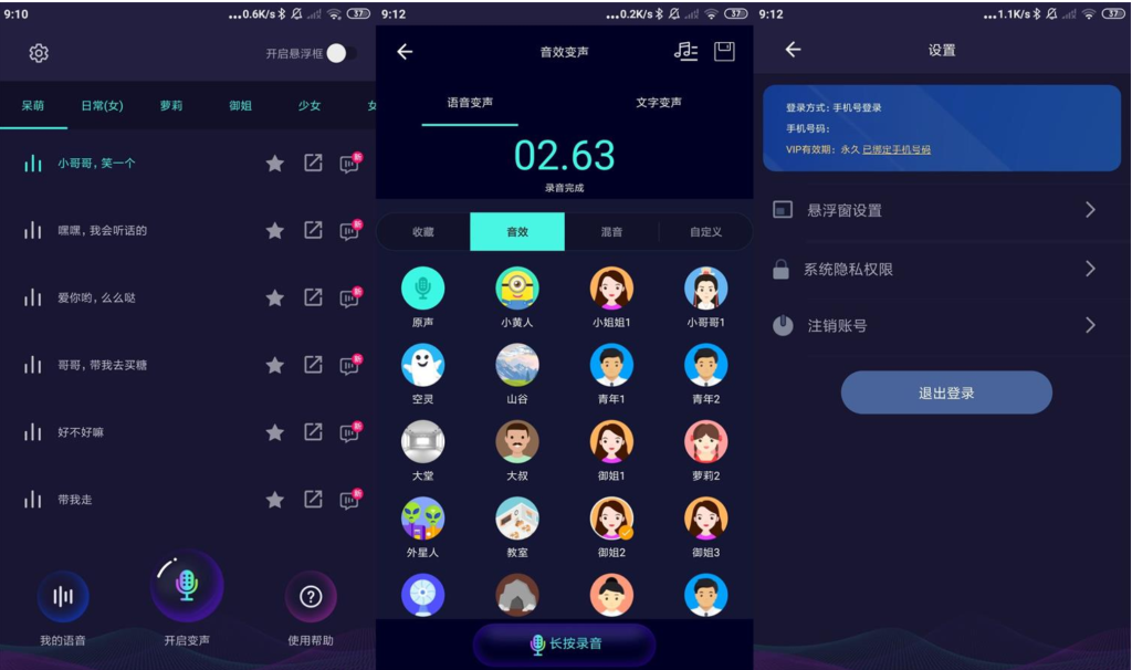3.多种变声器效果可选:爷爷、大叔、萝莉、小孩、幽灵、机器人……