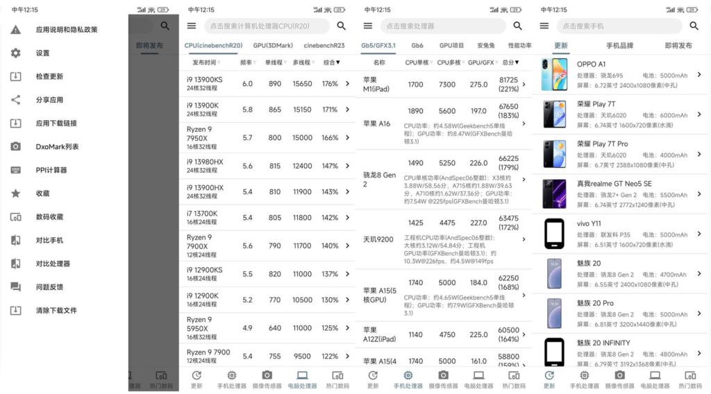 - 处理器评分:查看市面上主流手机处理器的性能得分