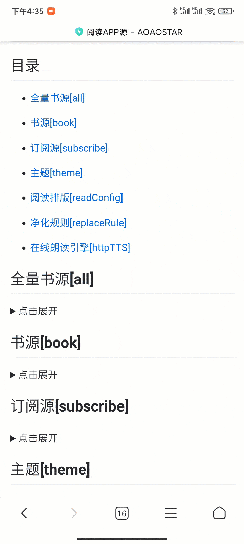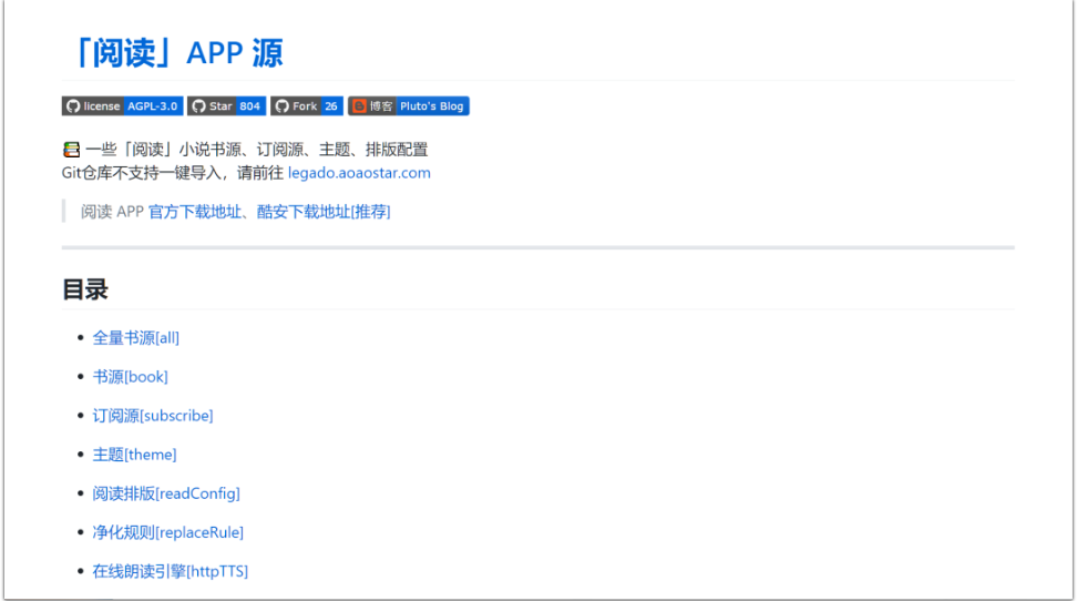 据说这个书源网站是App开发者自己开发的,但是其真假未知。里面收集了包含:小说书源、订阅源、主题、阅读排版、在线朗读引擎等内容。