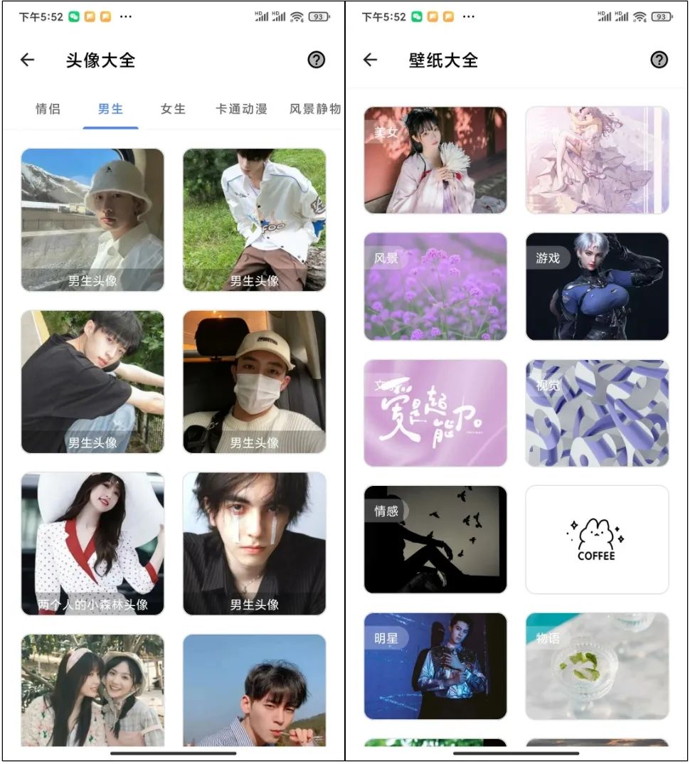 再比如:一些喜欢没事就搞搞机,美化一下的北鼻们就可以在头像大全和壁纸大全中选择自己喜欢的图片,所有图片都可以一键免费下载,并且没有下载次数限制的哦。