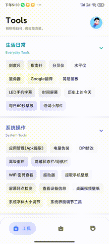 App呢大体主要分为【工具】和【特色】两个主要的板块,在工具板块中呢我们可以看到将近有100多个实用的功能。