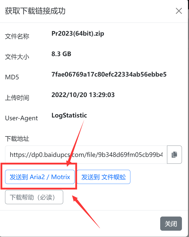 获取下载链接成功了之后呢,我们点击第一个按钮,发送到motrix,因为我们第一步安装的就是这个motrix软件。