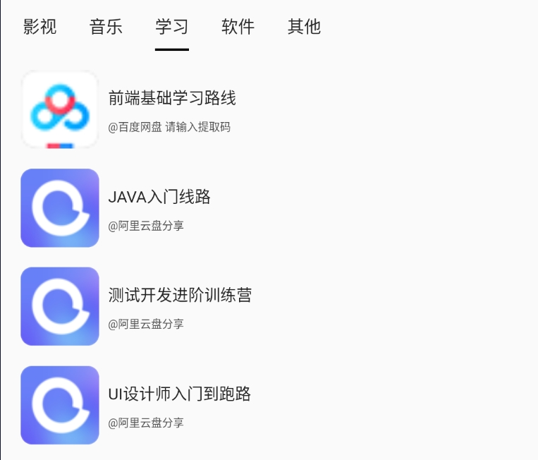 然后呢软件还有一个应用的板块,这边呢是官方给我们收集的一些不错的应用,包含:影视、音乐、学习、软件、其他等板块。