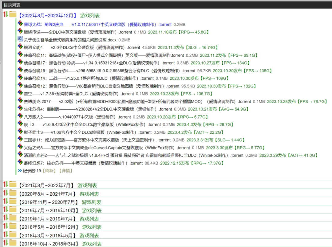 我们可以根据目录找到自己喜欢的游戏,点击即可下载啦,不过呢该站的游戏资源是以种子的方式下载的,大家可以使用夸克等支持下载种子的软件下载使用。