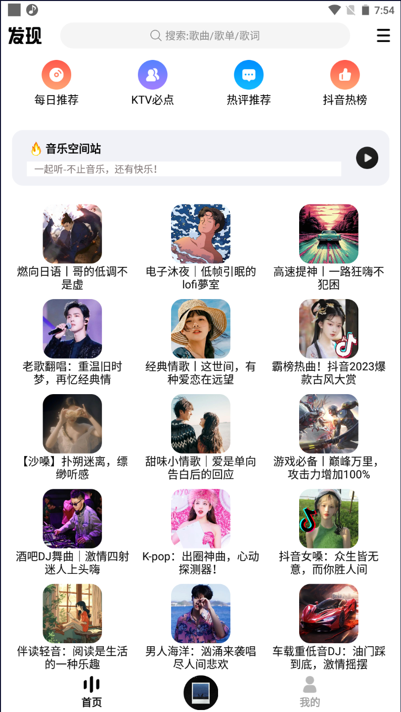 这也是一款免费的音乐听歌软件,我们可用根据首页的歌单、榜单、推荐等等找到一些不错的歌曲。