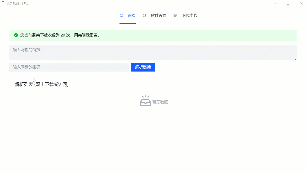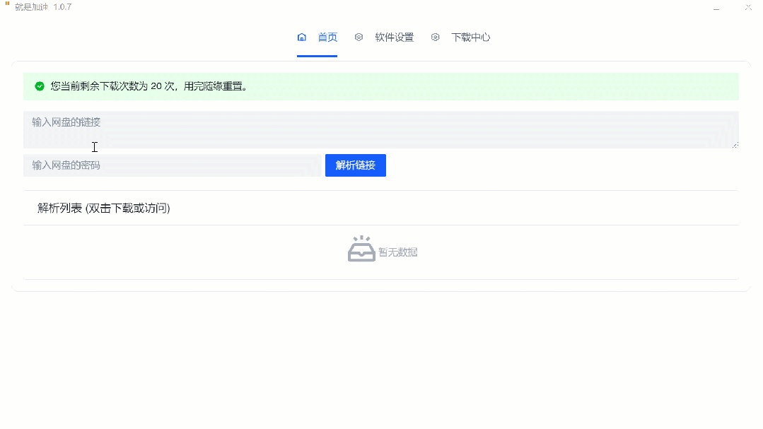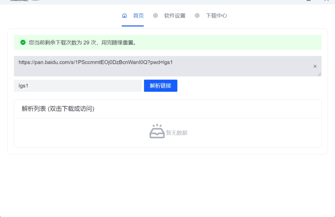 软件的使用方法也是非常的简单,只需要把链接和密码复制粘贴到对应的输入框中,然后点击解析下载即可。