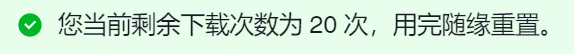 正常呢每天只能下载20次,用完了需要等待24小时才能重置!