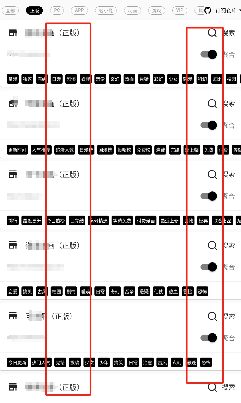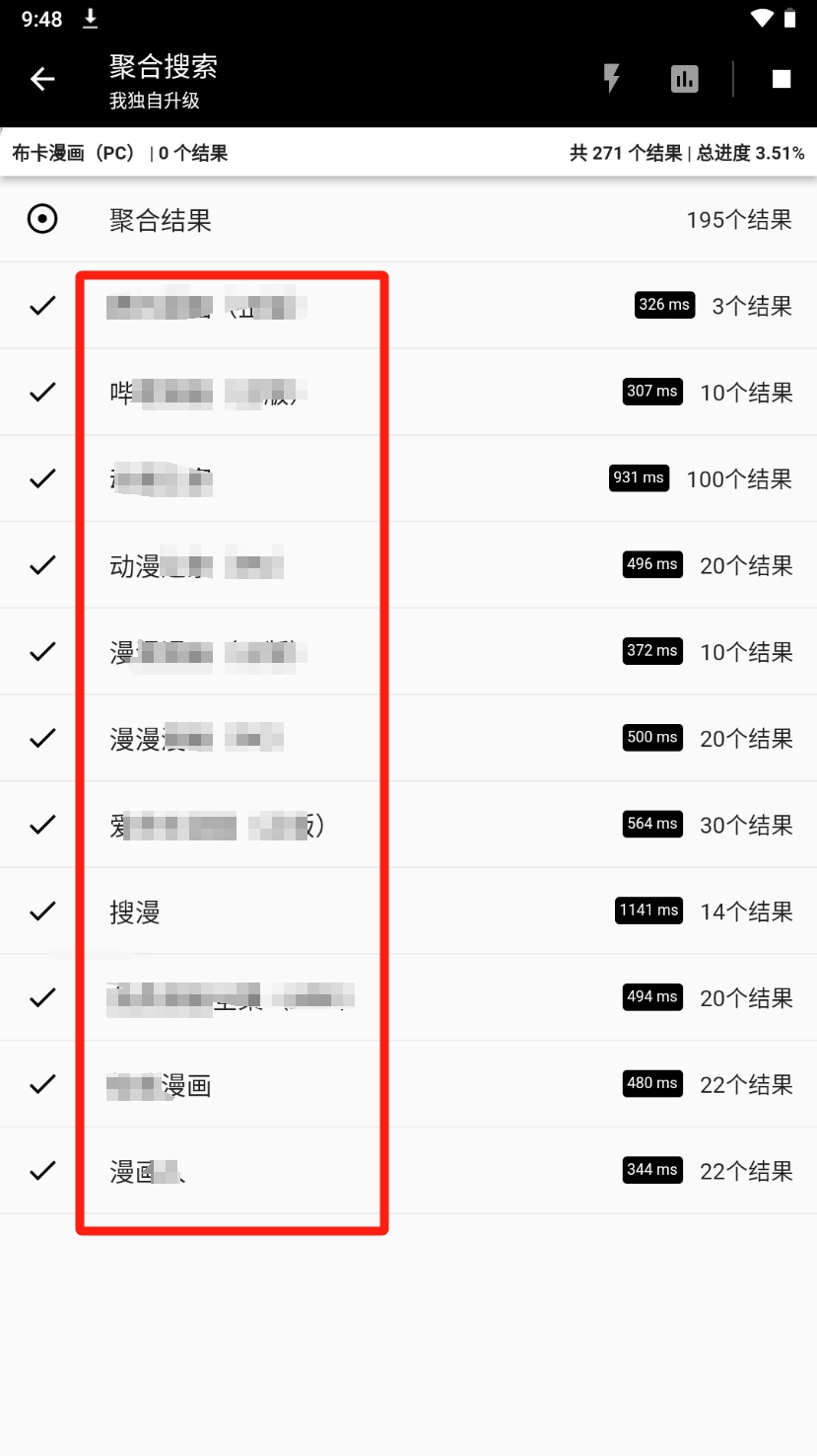 还有一个缺点就是搜索出来的漫画是以这种根据漫画源分类显示的。