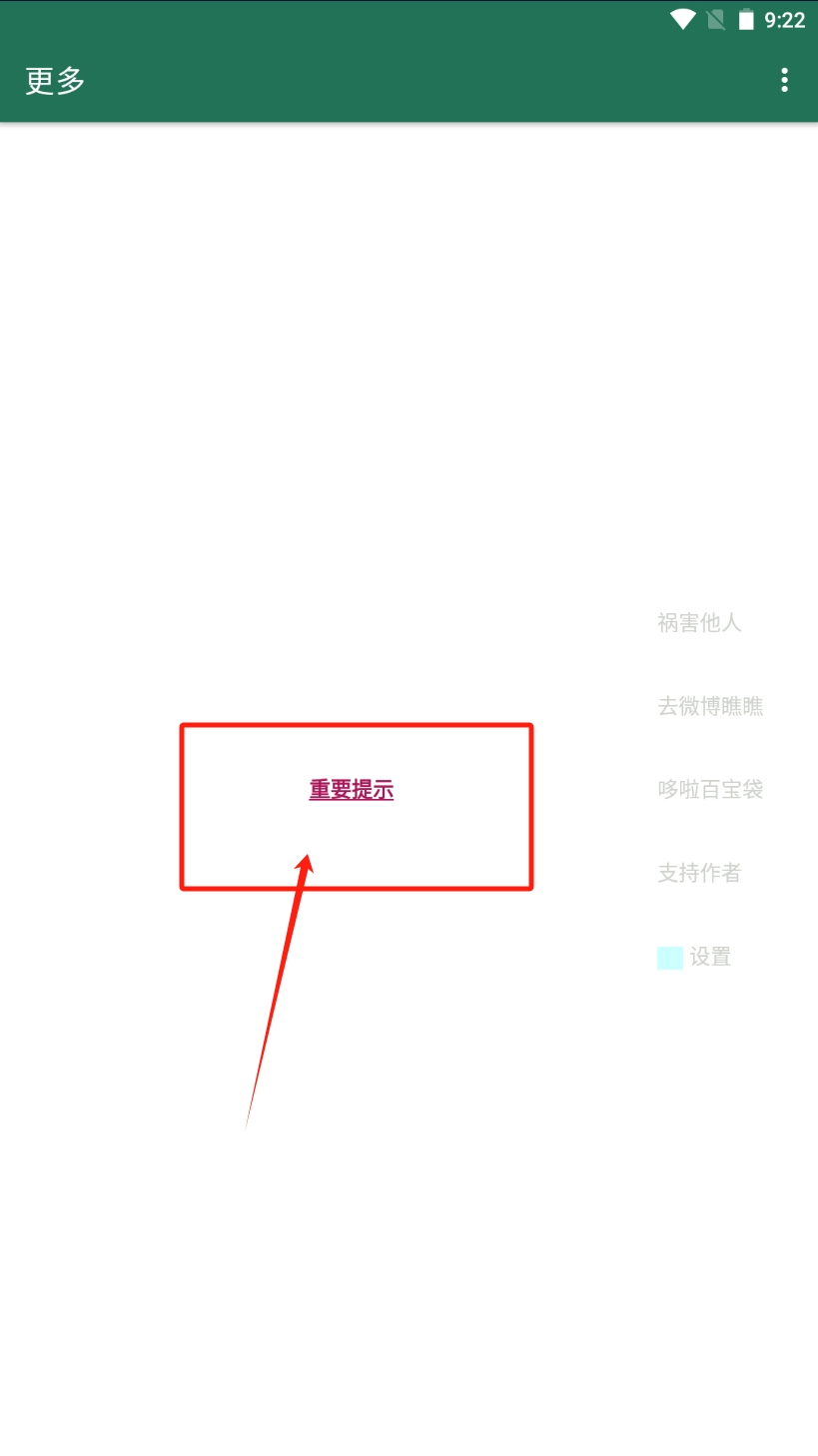 第二步,来到更多页面,点击【重要提示】,设置一下软件自启。