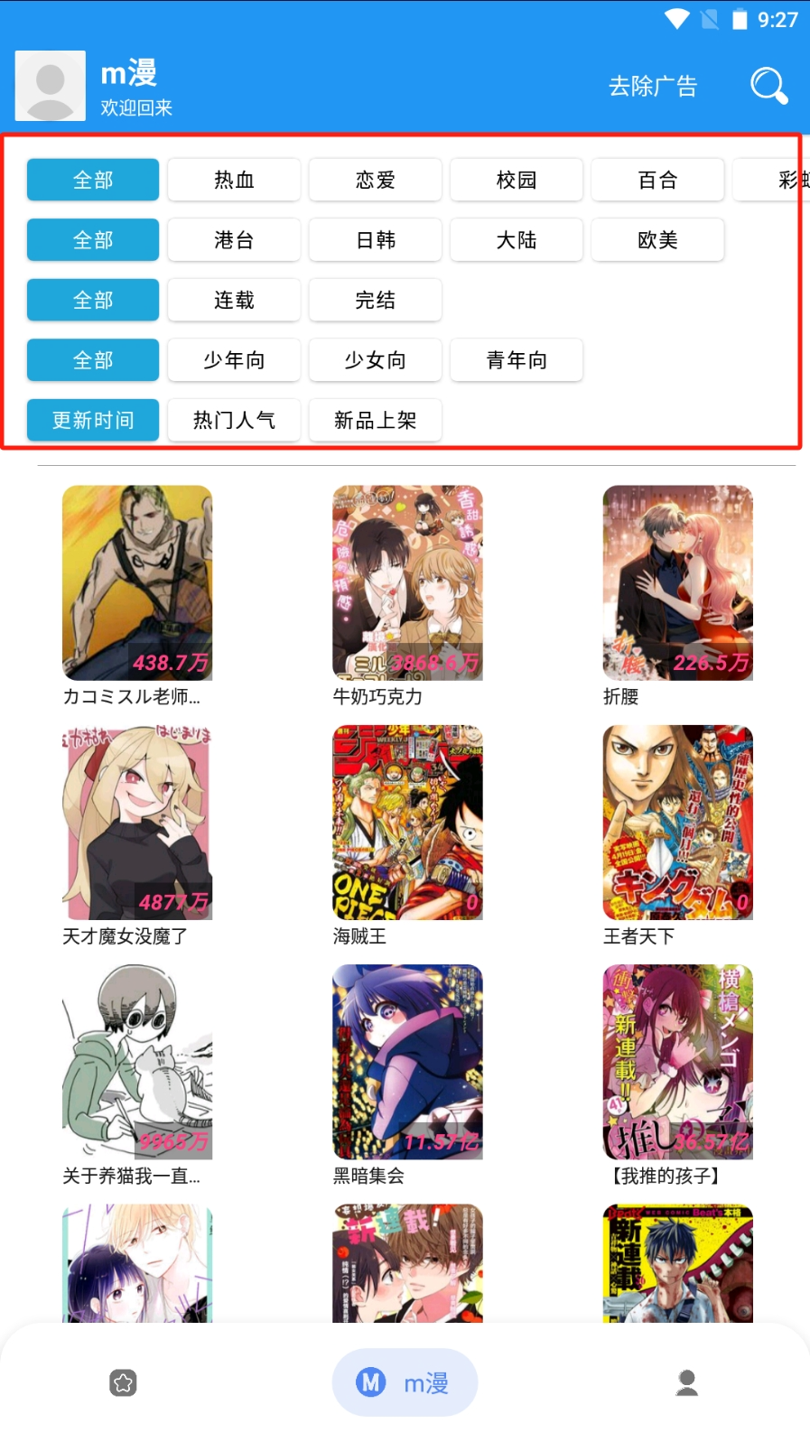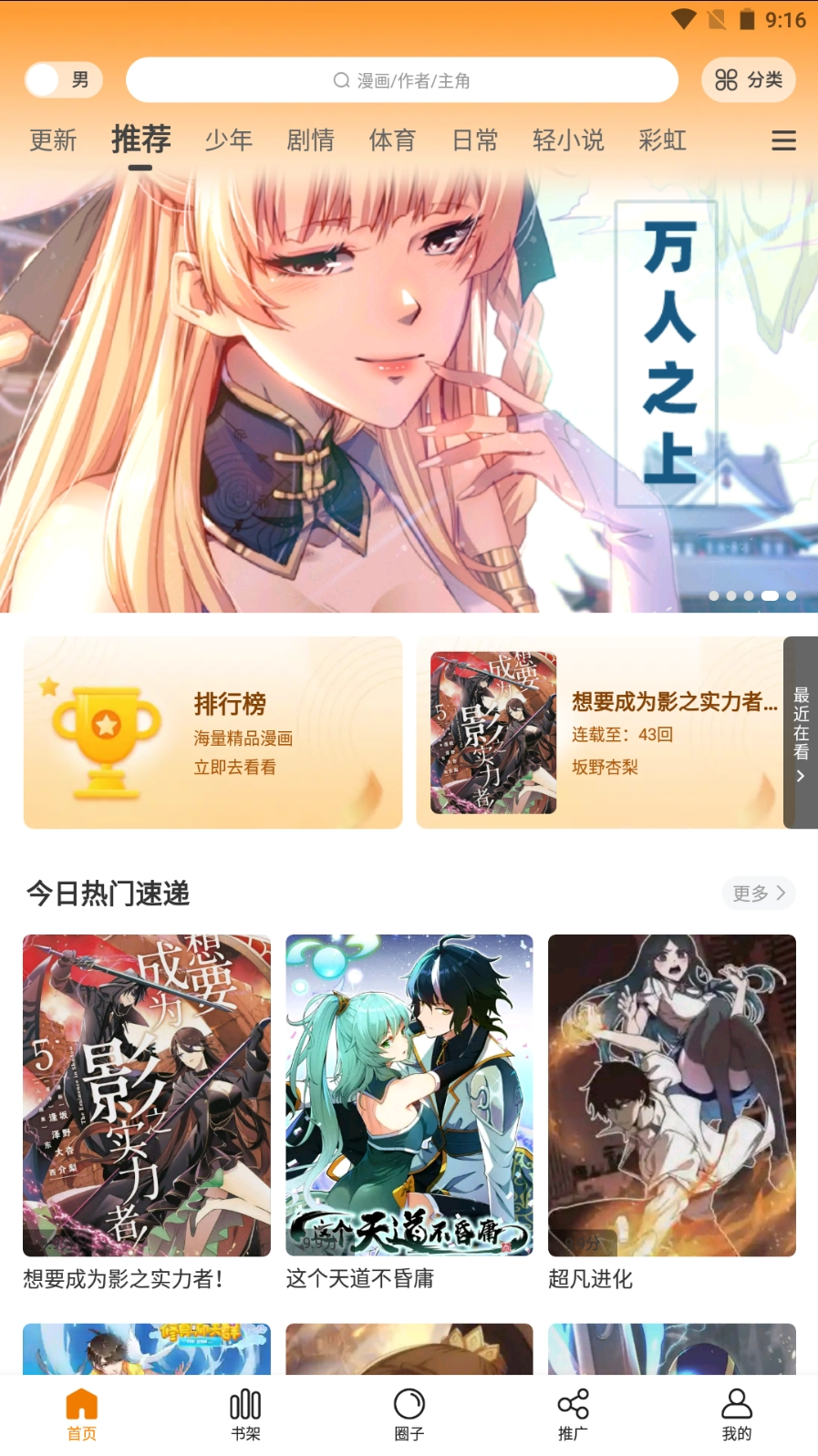 软件的漫画资源很齐全:韩漫、日漫、国漫等等都有。