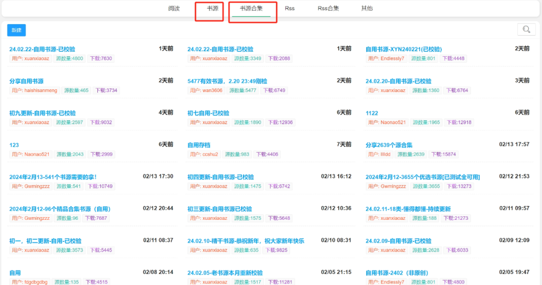 第一次使用是需要导入书源的,打开长青提供的书源网站,这里面有单个书源还有书源合集,大家可以自己找一个进去复制书源地址。