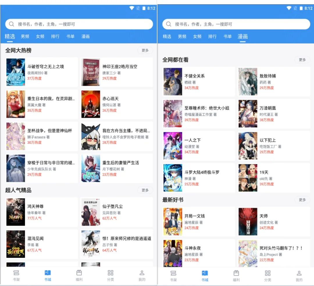 书城这里精选出来了一些不错的小说和漫画作品,还可以根据榜单找一找有没有自己喜欢看的。