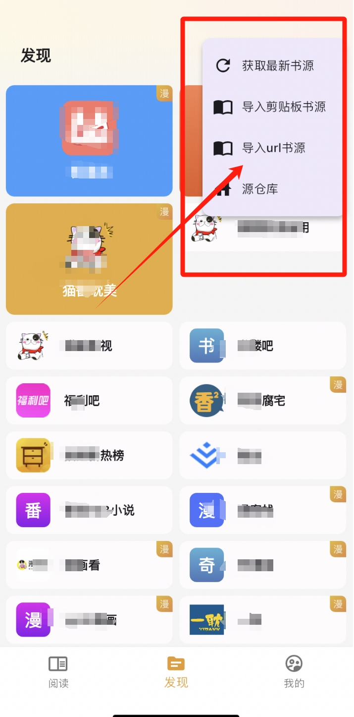 当然啦,我们也可以导入外部的源,在发现页面,点击左上角展开选项,选择从url导入源即可。