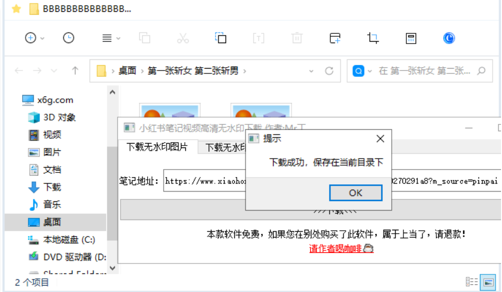 这是一款小红书批量下载无水印图片和视频工具,输入小红书笔记链接即可一键获取下载原图和视频内容,非常方便快捷,下载成功后会在目录生成内容文件夹。