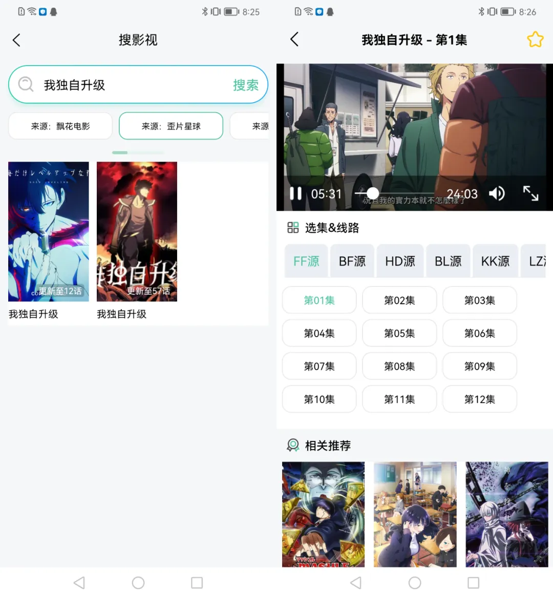 我们也可以直接搜索一些想看的视频,比如动漫….等等啥的,这个软件呢内置的资源挺齐全的,非常给力。