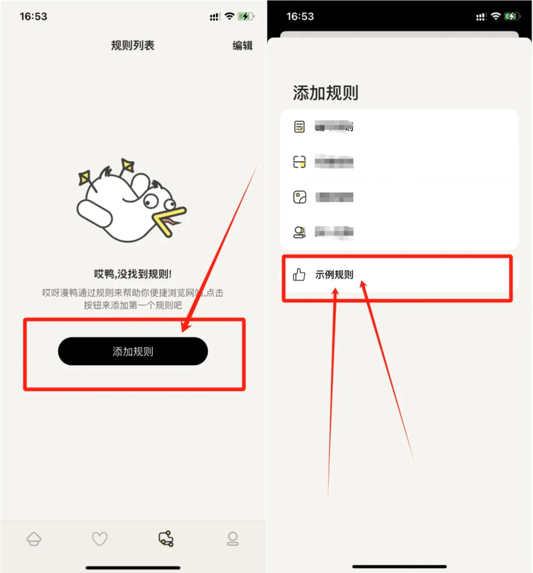 我们点击首页【添加规则】按钮,然后呢点击【示例规则】。