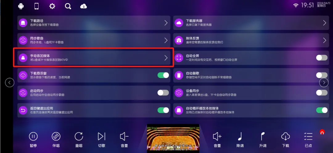 如果说软件中确实找不到你想要的歌曲,我们可以从外部的U盘或者渠道导入你提前下载好的媒体。