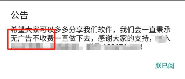 软件刚进去就会弹出一个公告,公告内容写的是:作者承诺软件永久免费使用,不会加任何广告,不清楚这个承诺是否可以保持,让我们拭目以待吧