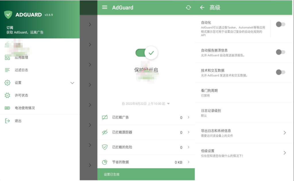 AdGuard最受欢迎的广告拦截程序,堪称去广告大杀器。Adguard安卓版无需ROOT权限,可拦截所有应用和浏览器的广告。具有广告内容拦截跟踪器(包括:广告拦截过滤器、社交过滤器、隐私过滤器、安全过滤器、自定义过滤器)、DNS过滤、HTTPS过滤、节省应用流量数据管理及隐身模式保护个人隐私功能。