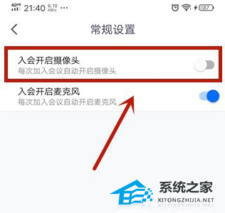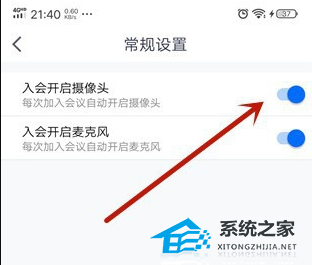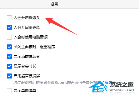 3、在里面勾选上“入会开启摄像头”选项就可以在加入会议时打开摄像头了。
