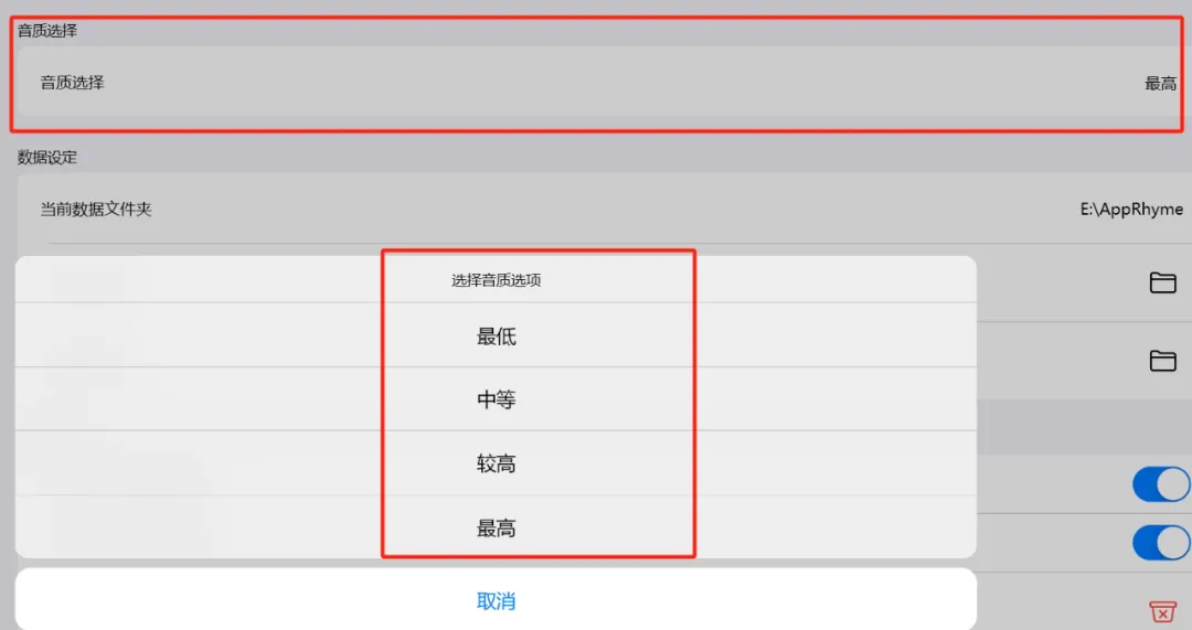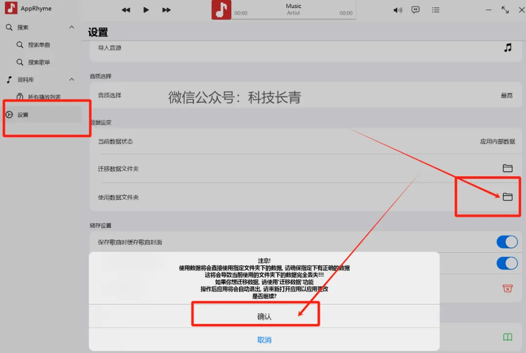 因为软件默认的设置数据储存是应用内部,我们要去更改成本地的数据文件夹,注意:这里如果不修改,下载歌曲不会下载到本地!