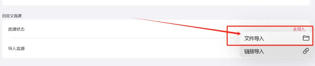 还是在设置里面,选择导入音源,选择【文件导入】,然后把长青给大家提供好的音源文件选择导入即可。