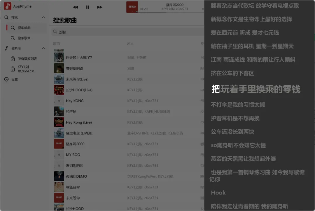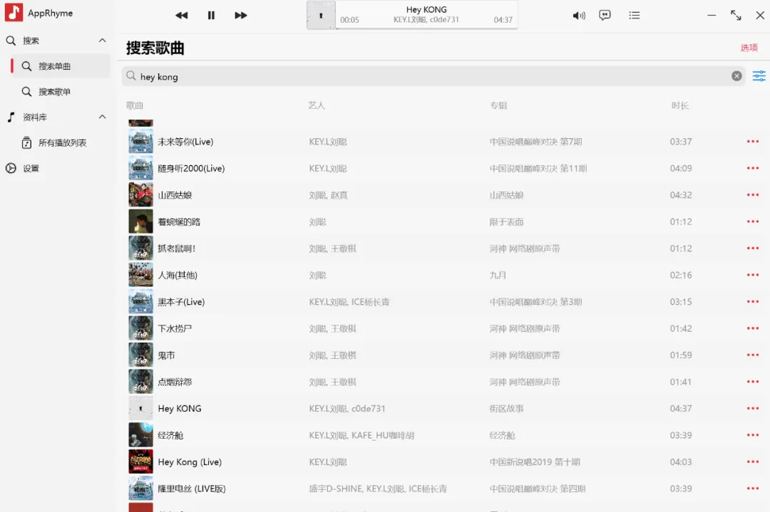 然后就可以去搜索音乐播放啦,不过因为才刚发布不就软件,还是有很多小bug的,这点大家就自行体验体验吧。