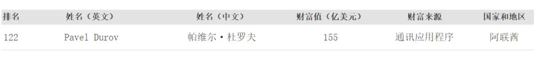 帕维尔·杜罗夫目前已是顶级富豪,据福布斯2024全球亿万富豪榜,帕维尔·杜罗夫身家达155亿美元(约合人民币1104亿元)。