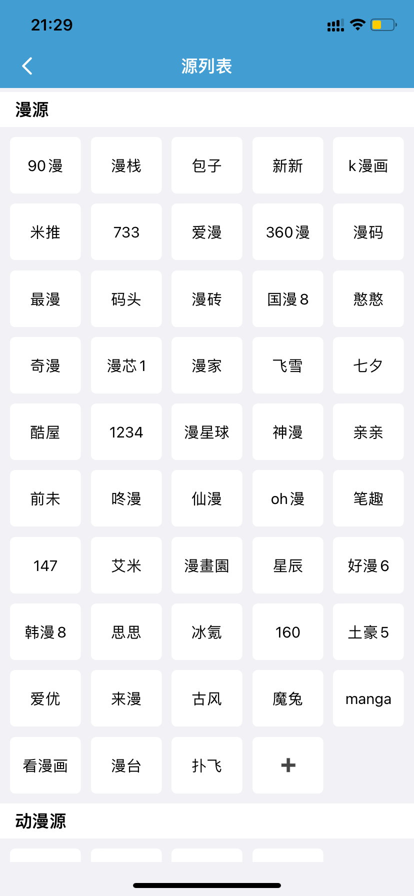 导入完成之后呢,我们就可以在【分类】页面看到各种的源,内置了超多的漫画源,小说源,动漫源等等…….
