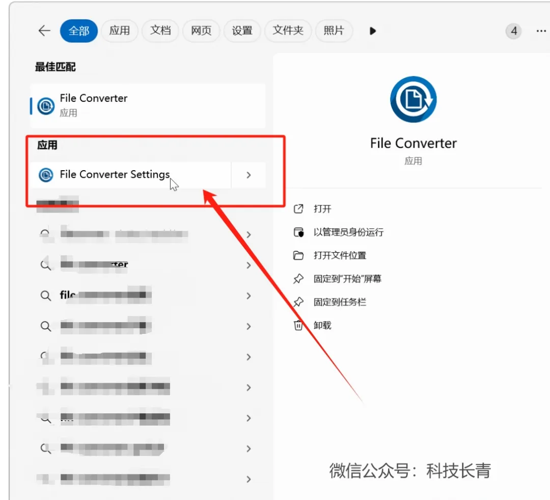 如果你的Windows电脑有搜索栏,我们可以直接搜索:FileConverterSettings这个应用。