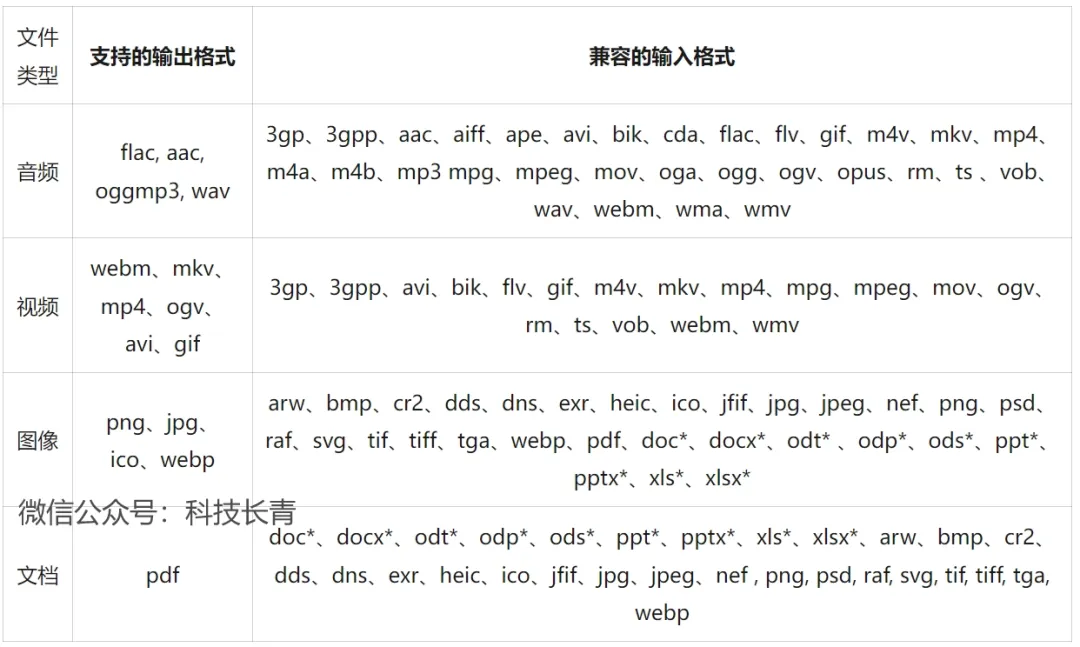 这是一款开源免费的文章格式转换工具,主要功能为多种文件格式的转换,包括图片格式转换、音频格式转换、视频格式转换、文档格式转换。