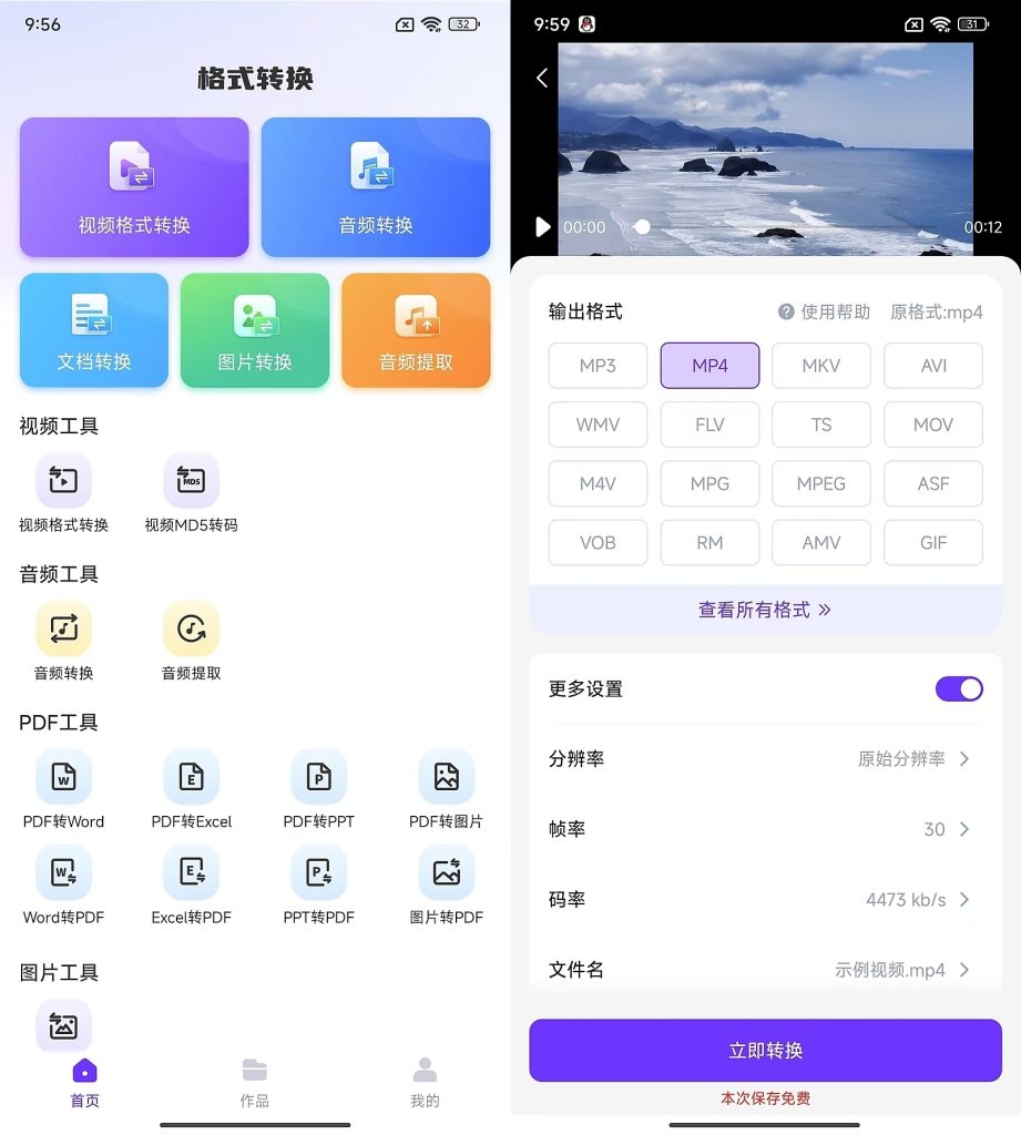 万能格式转换器是一个一键操作的转换功能,可以轻松实现多种视频格式、音频格式、文档格式、图片格式转换。同时支持日常生活中的各种文件转换,比如视频转换音频、视频压缩、视频音频提取、图片转pdf、视频md5转码等。