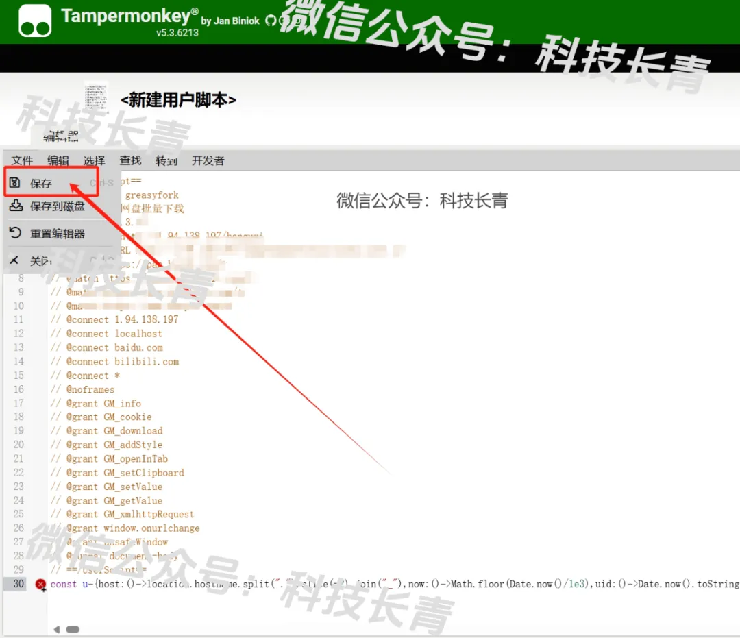 然后把长青提供的脚本内容粘贴到输入框中,接着选择保存即可。