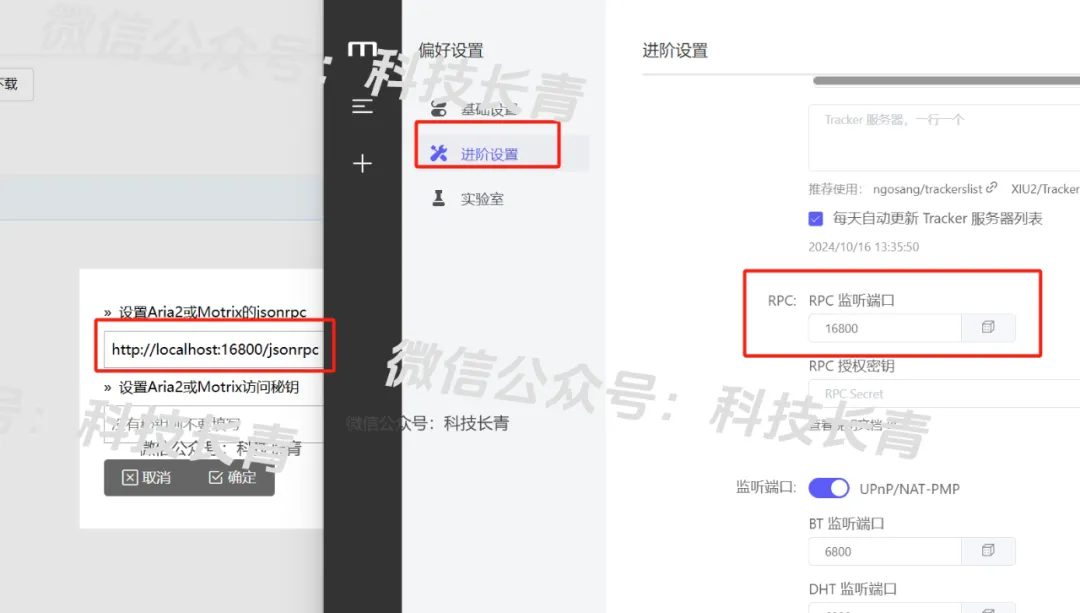 在下载之前呢记得先把长青提供的Motrix下载器软件安装打开放在后台,然后RPC端口要设置成和脚本设置里面的端口号一致