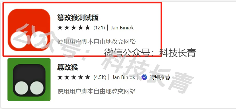 这次我们用到扩展的是:篡改猴测试版,记住是这个红色的测试版哦,别搞错了。