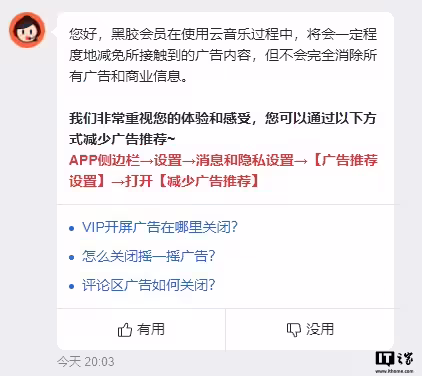 网易云音乐回应黑胶会员还有广告:不会完全消除所有商业信息