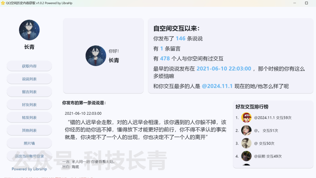 QQ空间历史消息分析,支持操作、导出说说列表、导出历史好友列表、导出留言列表、导出说说配图。