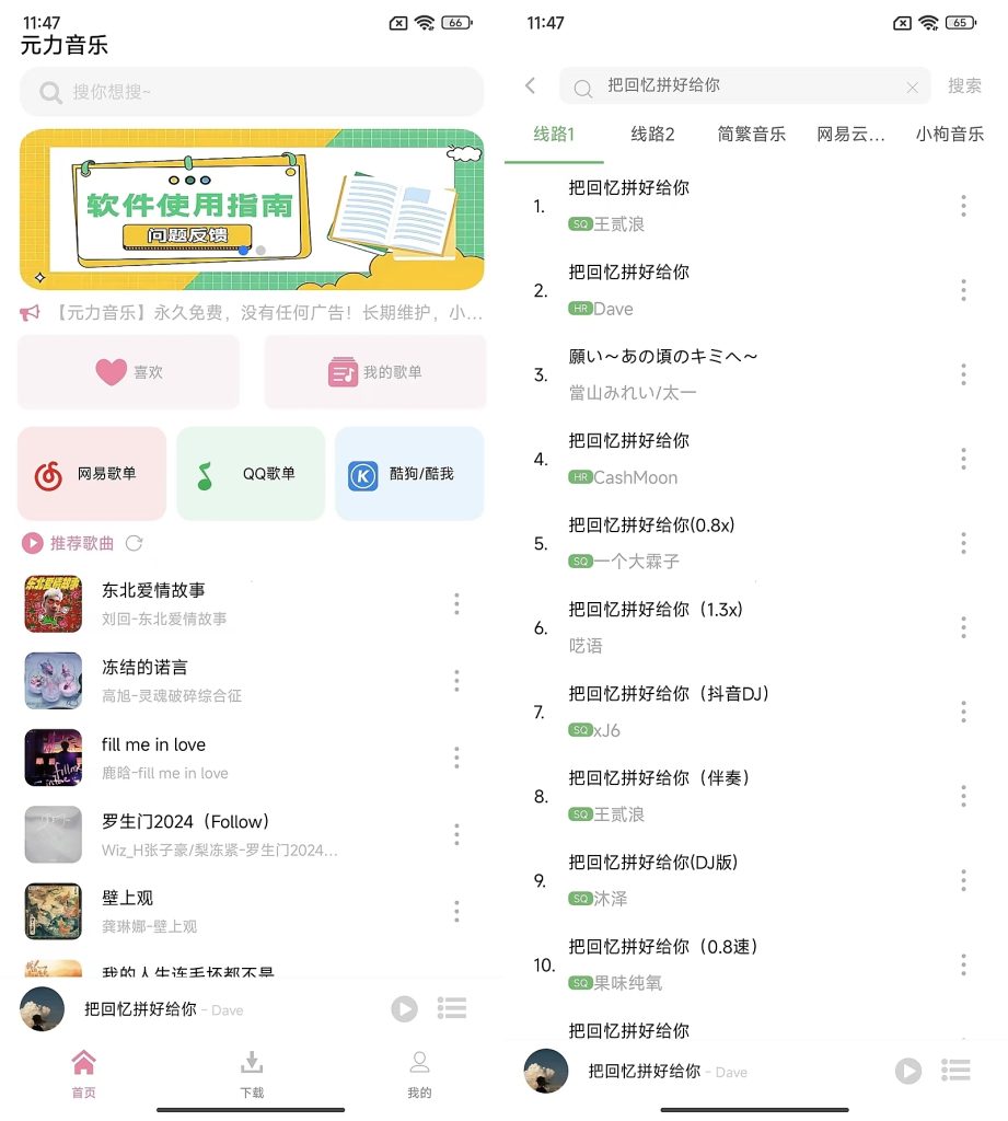 4、免费搜索和下载音乐资源,包括付费音乐的下载