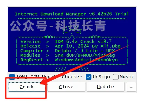 然后我们再启动idm激活工具,点击 Crack按钮,即可成功激活IDM。
