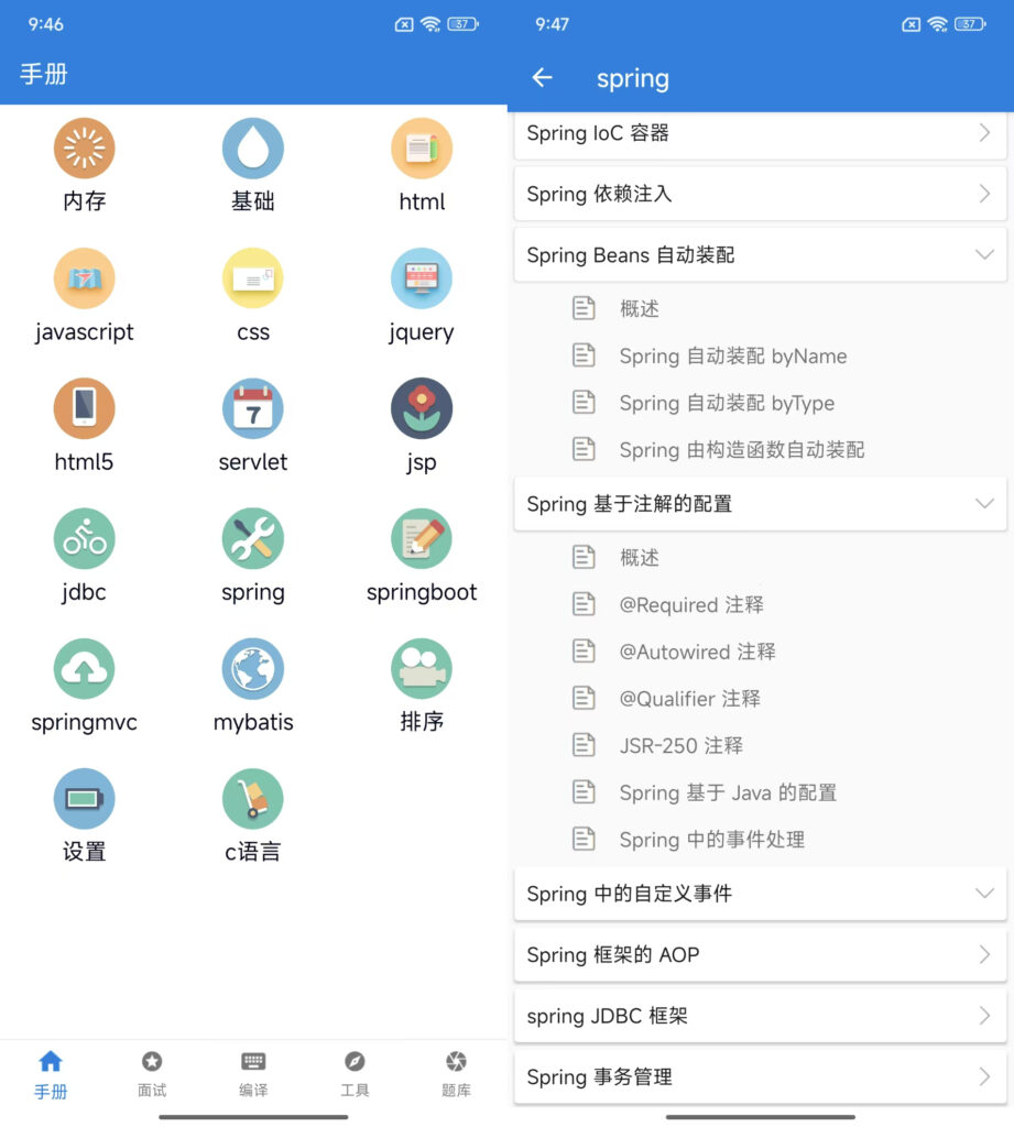 java学习手册app是一款非常适合java初学者入门的一款软件。