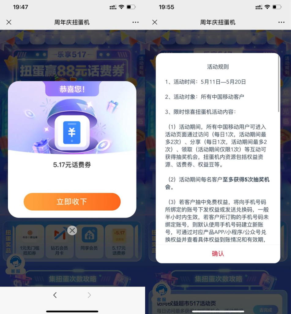 打开地址->登陆后直接抽->抽中话费券在“中国移动APP-我的-卡券”中激活即可