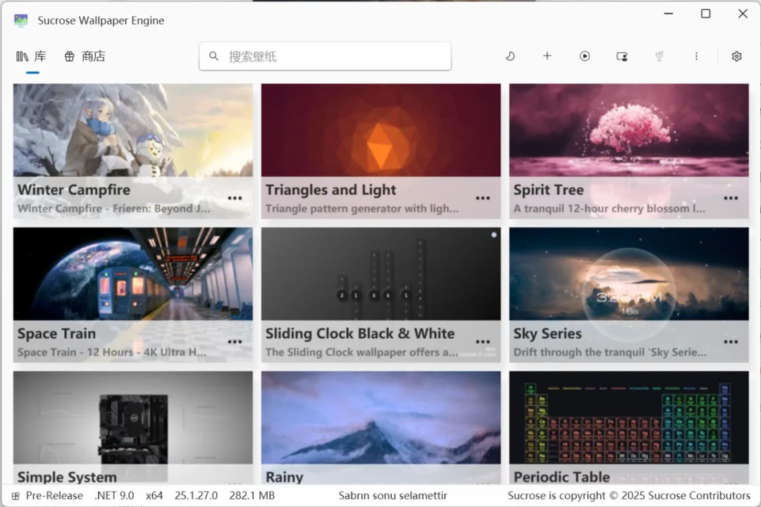 软件包含库和商店两部分,库里面主要存的是自己下载的壁纸,商店里面我们可以找各种壁纸。