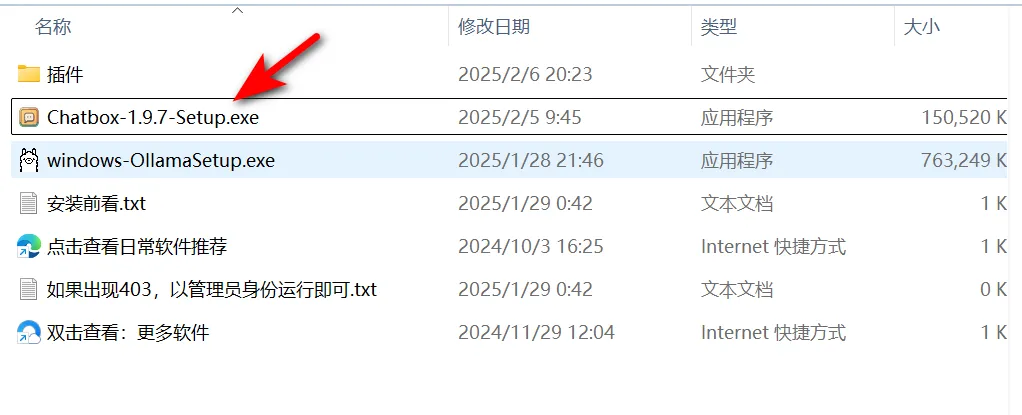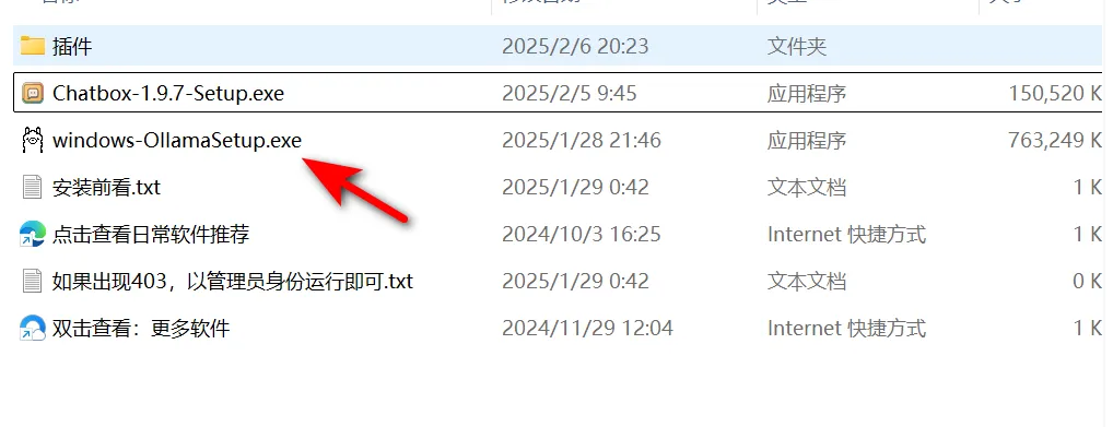 Ollama是一个支持大模型本地调用的工具,DeepSeek这种大模型的调用就是基于Ollama,所以大家首先双击“windows-OllamaSetup.exe”